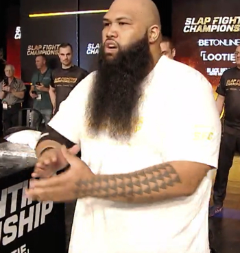 这位叫做Viernes的壮汉,是一个体重超过300斤的前橄榄球运动员,平时玩过拳击,也练过摔跤: