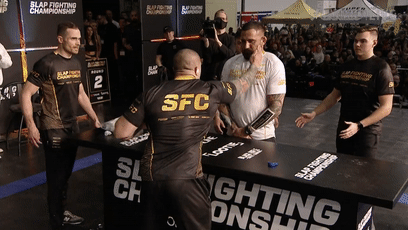 这场比赛是前几天在美国俄亥俄州举办的活动,名字叫做‘耳光格斗大赛’(Slap Fighting Championship)。