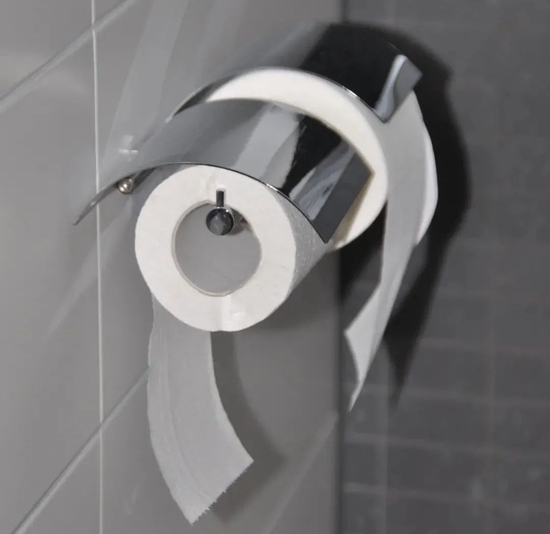 也正是因为如此,还催生了一些更贴心的设计。比如在厕所里放两个卷纸架,一个朝内一个朝外,互不影响。或是能旋转的卫生纸架、自动出纸机等。
