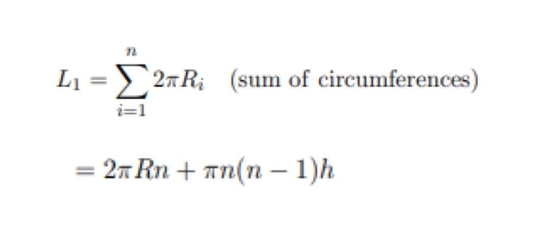 所以第一层的半径就是R1=R,第二层R2=R+h,第三层R3=R+2h,第i层就变成了Ri=R+(i-1)h。