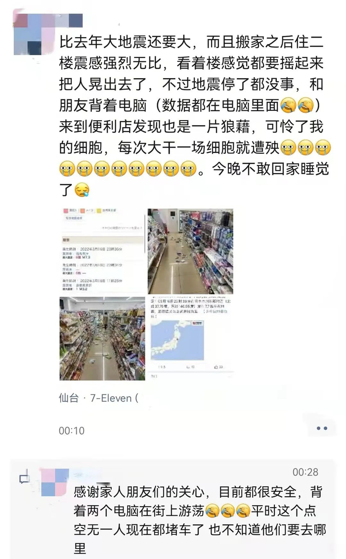 居住在仙台的小伙伴更是被强烈的震感吓到有家不敢回。