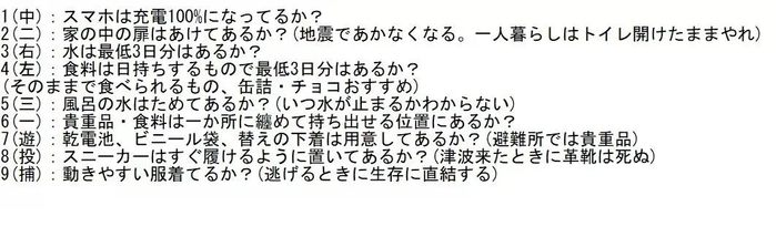 经历过311大地震的网友也给出了地震对策的建议。
