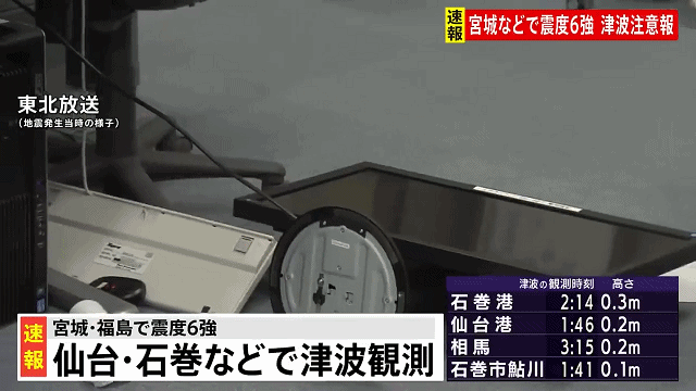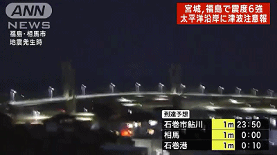 3月16日晚上23点40分左右,福岛县附近海域发生了里氏7.3级地震,震度为6强。