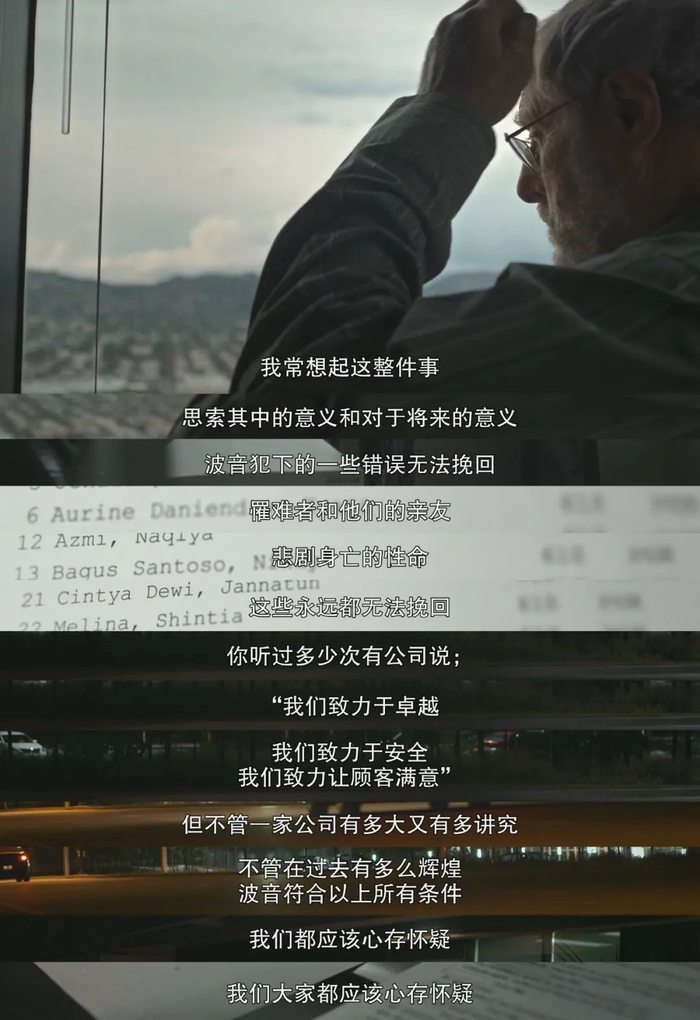 这是最恐怖的地方。波音知晓自己的所有问题却只做最低限度的补救,相比乘客的安全,更在意每天能卖出多少飞机,能赚得多少利益。用纪录片里的话来说,“波音总裁们拿着高额的年薪,但目标只是如何提高股价,去取悦华尔街的人 ”。