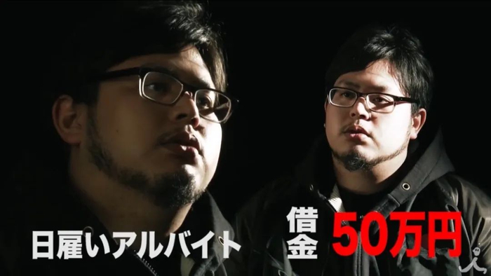大浦忠明,节目开播时40岁,职业是地下偶像,平时还会打些可以日结的零工,欠款金额550万日元。看到这里小编忍不住感慨,艺人这职业还真是同人不同命啊…
