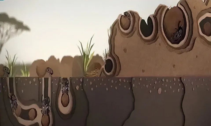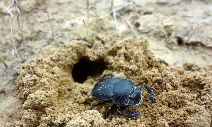 地道型:地道型屎壳郎和推粪型一样,只不过他们更省力省心,直接在便便下面挖好洞穴,把粪便推进洞穴,做好形状,就成了“育儿场所”。