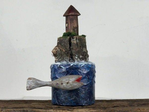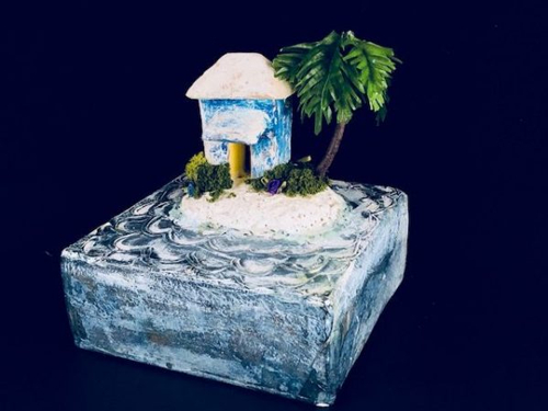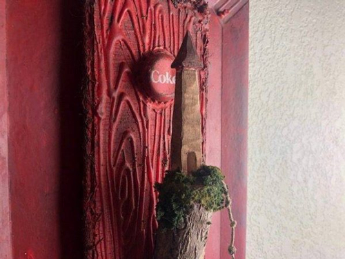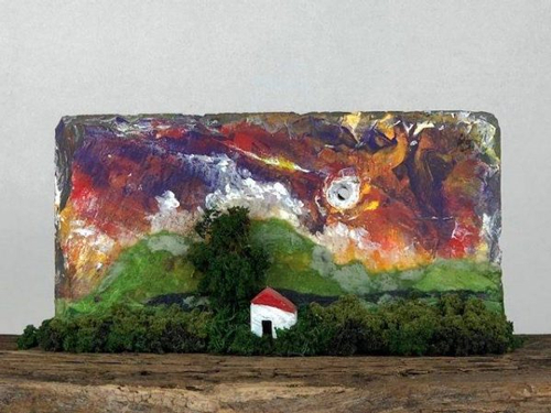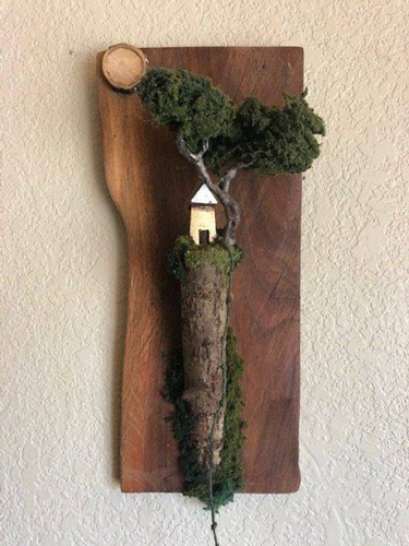 类似的作品还有这个,只不过小木屋换成了尖塔,同样可以作为墙饰放在墙上。