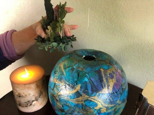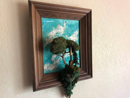 关于骨灰盒的创意,这位艺术家似乎没有什么瓶颈期。他创作的作品可以摆放在室内,让骨灰与画作融为一体: