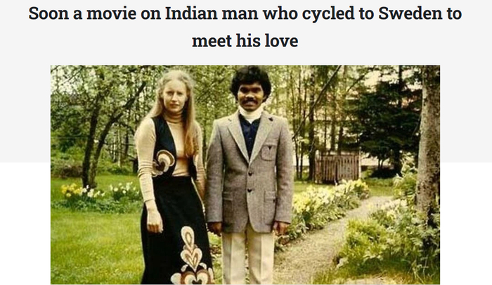 印度男人骑车到瑞典寻爱的故事很快被改编成电影