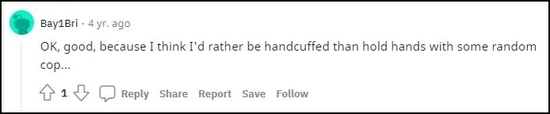 Reddit用户@Psatch认为,警察对罪犯弃用手铐的牵手行径会加重行贿问题。