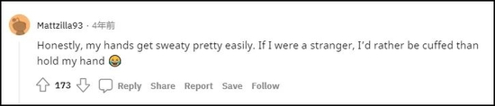 我有手汗,我宁愿被铐起来也不愿被陌生人牵手