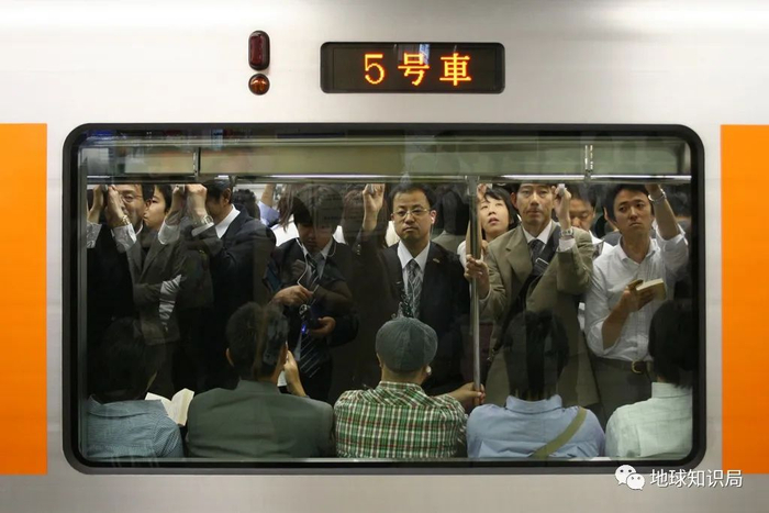 除了住房拥挤,交通拥挤也是在东京生活的人必须面对的日常。这里近80%的人会选择轨道交通出行。工作日的上下班高峰时段,人流量激增,很多换乘站点会迎来大批人潮,吵嚷拥挤更是屡见不鲜。
