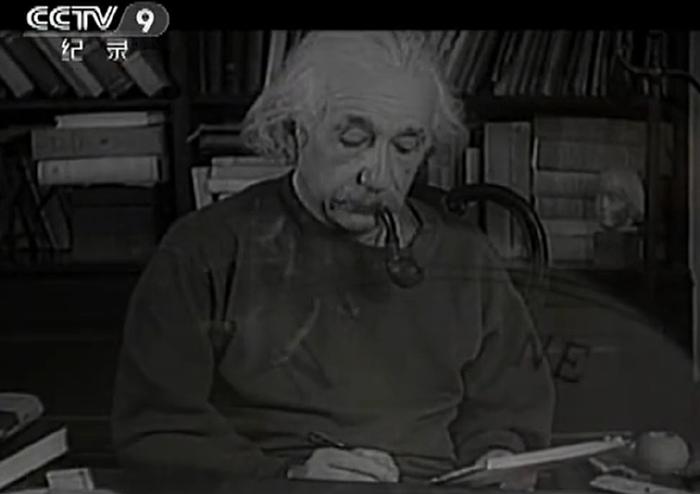 工作中的爱因斯坦。来源/纪录片《爱因斯坦》截图