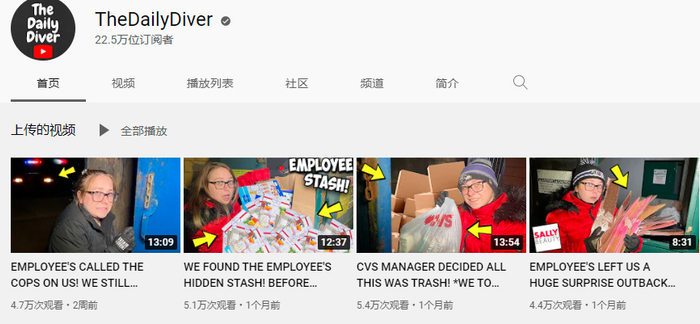 在被命名为thedailydiver的频道上,夫妻档把同行都称为垃圾箱冲浪手,至今已吸引超过20万的爱好者。