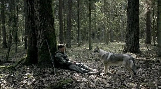 片中弗里德海姆的目光从开始的澄澈呆萌,到之后的迷茫木然,再到最后与狼对视时的狠厉嗜血,随着灵魂的塌陷一步步走向彻底的毁灭。