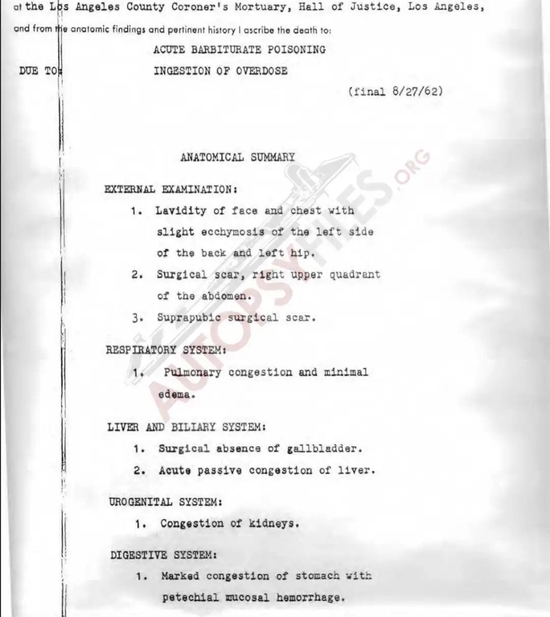 玛丽莲·梦露的尸检报告