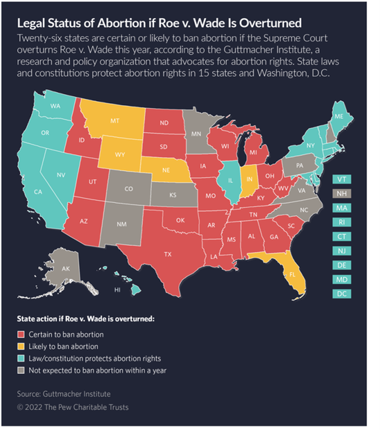 ●一旦罗伊法案被推翻,美国各州对人工流产的态度 / Guttmacher Institute