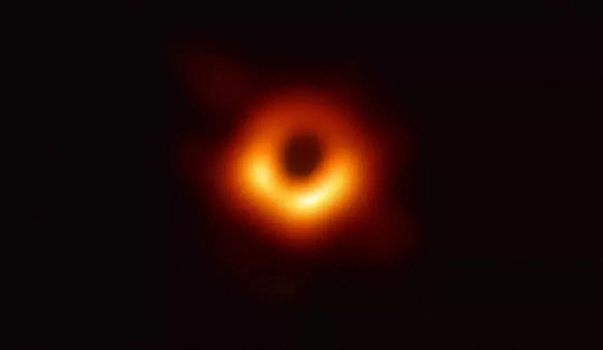 第一张黑洞照片,5500万光年外的梅西耶87*(M87*)。图片来源:Event Horizon Telescope Collaboration