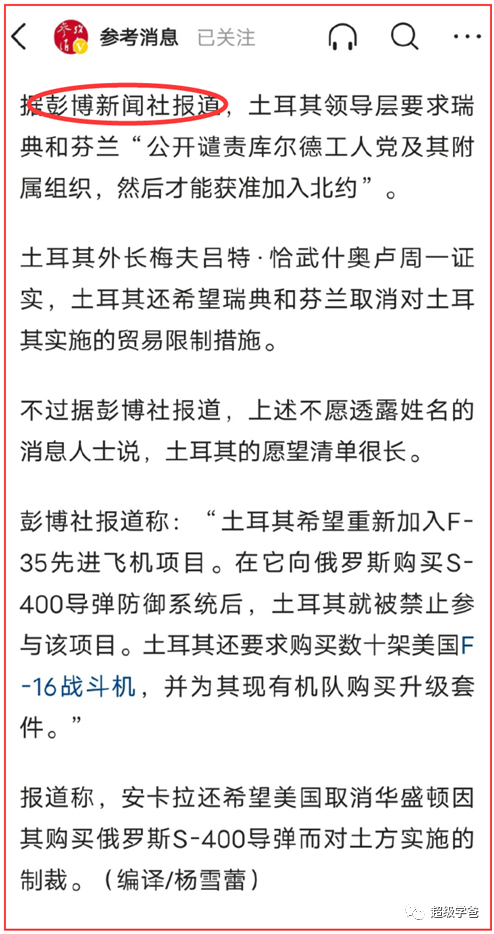 土耳其反对芬兰和瑞典加入北约,并且给出了具体的理由。这说明了什么?说明土耳其反对,并不是因为俄罗斯的原因,这就相当于公开要价。