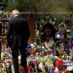 当地时间5月29日,美国总统拜登夫妇前往得克萨斯州尤瓦尔迪市,慰问罗布小学枪击案遇难者的家属。