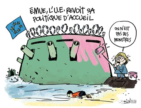 图2、讽刺欧盟难民政策的漫画(WordPress.com)