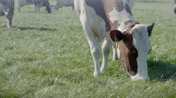 ▲ 荷兰农场内正在进食的奶牛,截图来源:荷兰皇家菲仕兰康柏尼公司官网