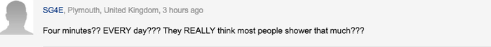 “四分钟?每天?他们真的觉得人们每天可以洗那么长时间澡嘛?”