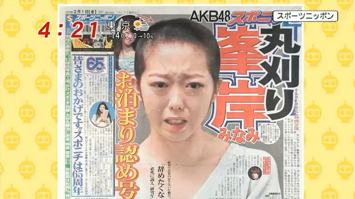 2013年,AKB48成员峯岸みなみ(峯岸南)削发道歉,受到广泛关注。