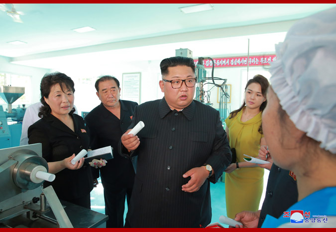 朝中社报道,金正恩先是和夫人李雪主视察了新义州一家化妆品厂,对这家工厂的工作,金正恩很满意。