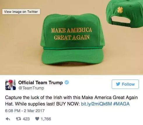 而爱尔兰“戴绿帽”的风俗可谓“举世皆知”,就连川普都曾趁着圣帕特里克节,在推特上秀了一把自己的“绿帽子”!