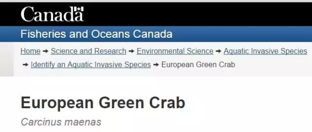 加拿大渔业海洋部已经把欧洲青蟹列为全球最讨厌的10个物种之一。