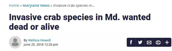因此马里兰州安奥兰多郡公共事业处提醒民众:一旦看到大闸蟹,无论死活都不可以再丢回水中。
