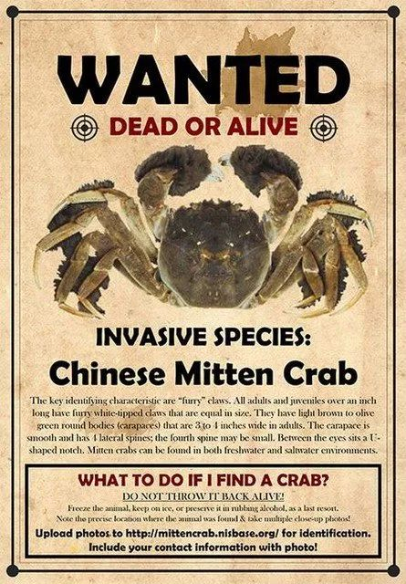 通缉令上写的清清楚楚,要抓的就是中国大闸蟹(Chinese mitten crab)。