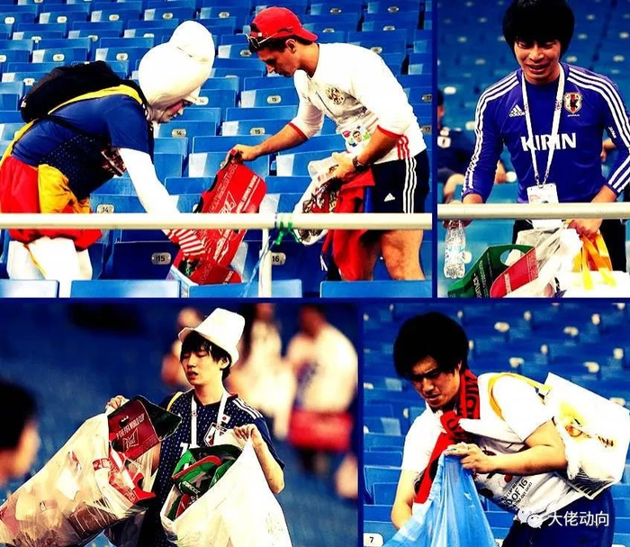 但看台上的日本球迷,却在目睹了球队最后时刻被绝杀后,含泪主动清理了垃圾。