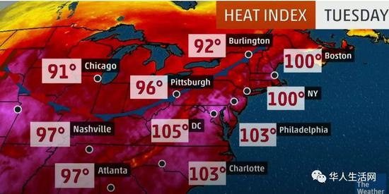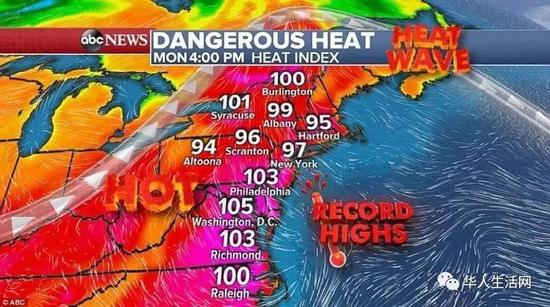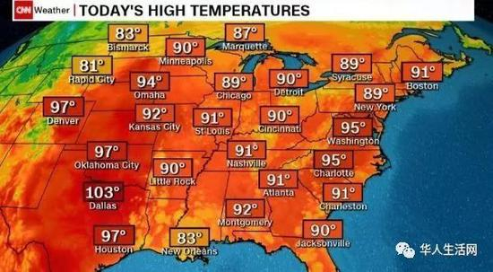 从亚利桑那州到缅因州的广袤地区,全美十八个州温度冲破100华氏度,并有多个地区温度已经刷新有气象记录后的最高纪录,全美就像一个大火炉,影响美国1亿多人。