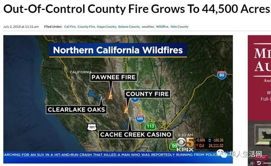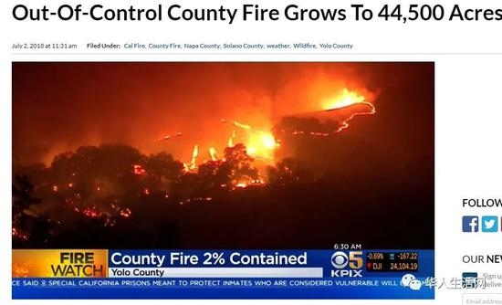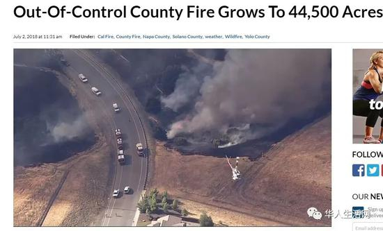 其中Yolo县的大火沿着16号高速公路一度失控,导致火势在一夕之间扩大了一倍。