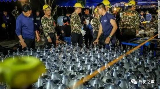 潜水用的氧气瓶已经被运到洞中 CNN 图