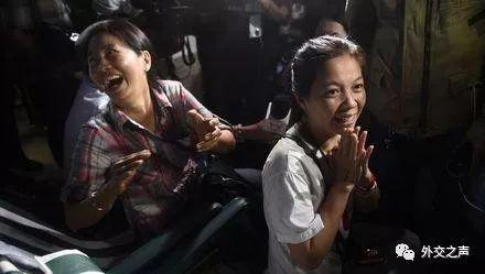 失踪的13人被找到时,坐在前排的少年激动地哭了,用英语对发现他们的英国搜救队员说:“谢谢你!”,还有少年对着潜水员鞠躬致谢。
