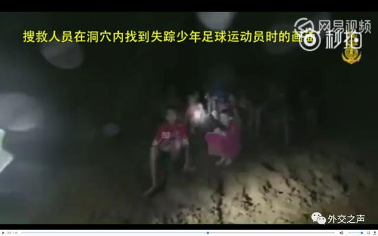 泰国海军发布一段5分钟视频,显示海军特种部队和英国潜水员见到身穿球衣的队员。孩子们十分高兴,感谢搜救人员。