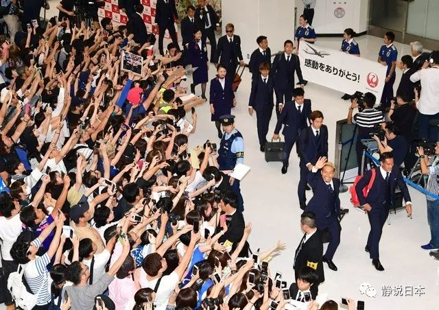 日本足球队今日从俄罗斯回到东京,受到了800多名足球迷们的欢迎。但是,除了一贯嬉笑的本田之外,全体球员是脸色凝重,一身的疲惫。