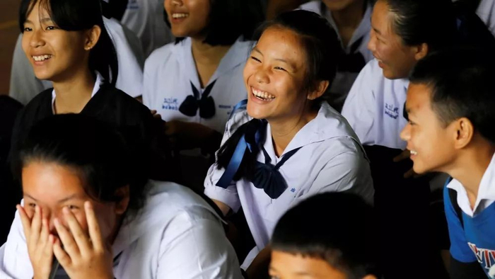 而孩子们的校友也在为他们祈祷。在得知第一、第二批次救援成功后他们太高兴了!清莱府府尹提到,这是民众期盼已久的一天!