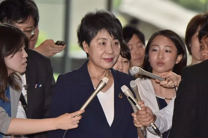 6日,日本法务大臣上川阳子接受媒体采访。