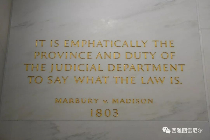 1803年,最高法院首席大法官马歇尔通过 Marbury vs Madison一案,正式确定了最高法院在美国政治生活中至高无上、一槌定音的权力和权威。