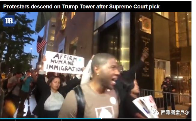 特朗普提名完大法官人选后,一帮人开始在特朗普大楼下抗议了