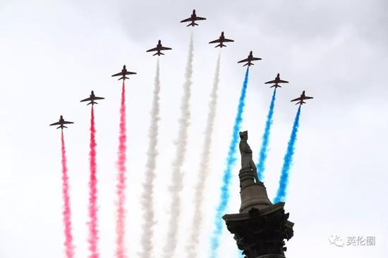 总而言之,王室这么齐齐出动,阵势大得如同一个月前的女王生日阅兵啊(戳这里可以复习圈哥的现场报道)!而且通常阅兵当天的RAF皇家空军表演,参与的飞机也就不到20架,这回一次性出动103架,是相当高规格了!