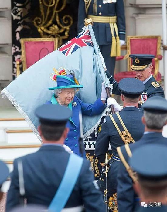 每次RAF迎来大型庆典的时候,根据传统,女王都要为他们换上新的“女王色”(Queen‘s Colour)。这个名字听起来会让人以为是什么新制服,但其实它是RAF旗帜的意思。