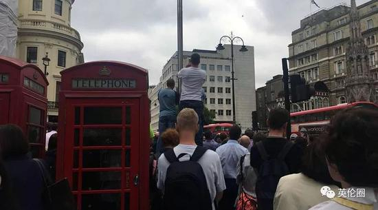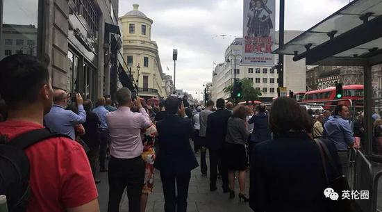 今天中午大概12点过到1点之间,圈哥在伦敦市中心特拉法加广场旁的大街上,看到满大街的英国人,动作一致地……举着手机,仰头望天▼
