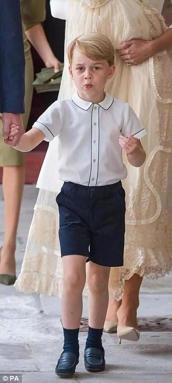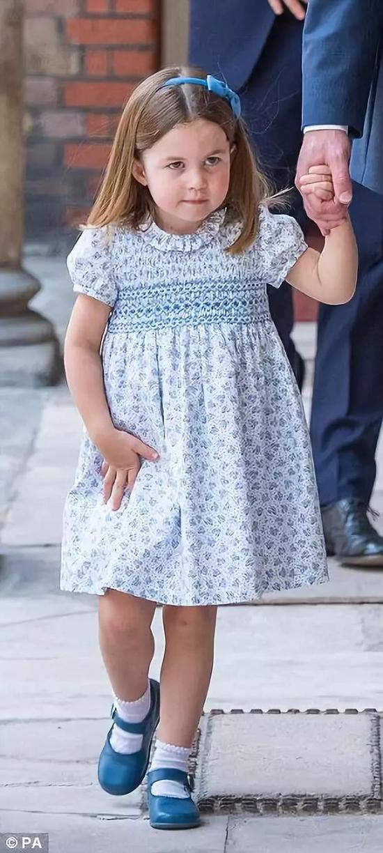 感觉两人又长大了些。他们两个兄妹跟父亲威廉王子一样都是蓝色系衣服,乔治穿着海军蓝短裤和边是天蓝色的衬衫,而夏洛特则穿着蓝色的印花连衣裙和同样颜色的扣带鞋。