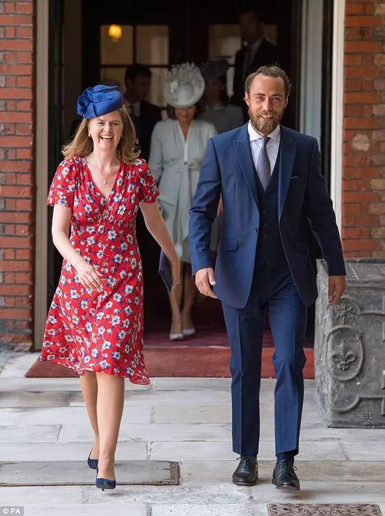 她跟凯特的弟弟一起到来,其实她还是夏洛特小公主的教母之一。她是威廉和凯特的朋友,其丈夫James Meade还在威廉和凯特的大婚上发表了讲话。