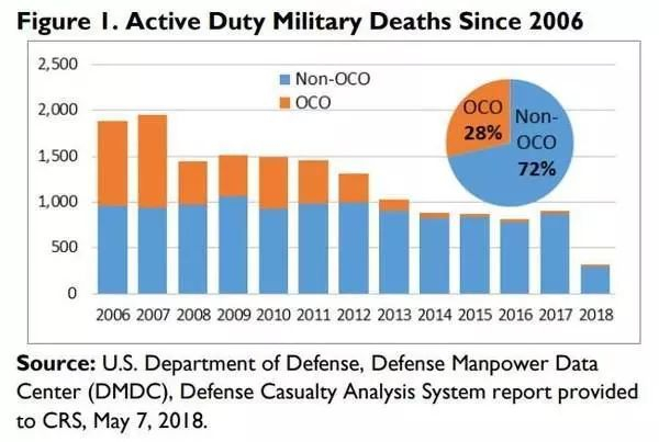 这份报告所列的数据是根据美国国防部的官方数据核算出来的。该报告分析了海外应急行动(OCO)和非海外应急行动的伤亡情况,其中海外应急行动是指“武装部队成员正在或可能参与针对美国敌人或敌对军事力量的军事行动、行动或敌对行动”,这包括大量军事行动,但不包括在训练和装备试验中死亡的美军人员。